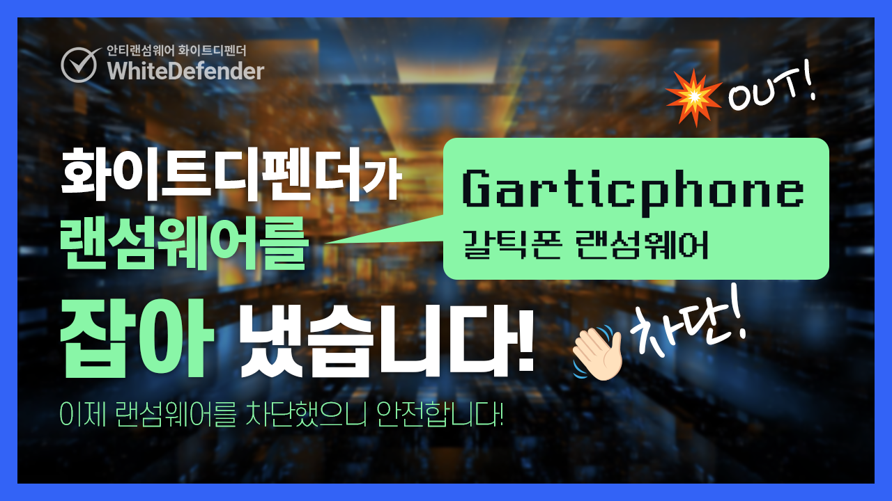 화이트디펜더 렌섬웨어 차단 영상Q. 랜섬웨어에 걸리면 어떻게 될까요?No. 155 갈틱폰 랜섬웨어 Garticphone