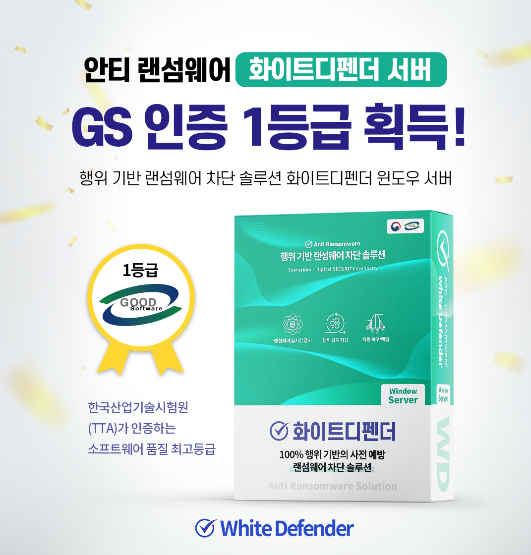 에브리존, 윈도우서버 전용 안티랜섬웨어 ‘화이트디펜더 서버 V1.0’ GS인증 획득