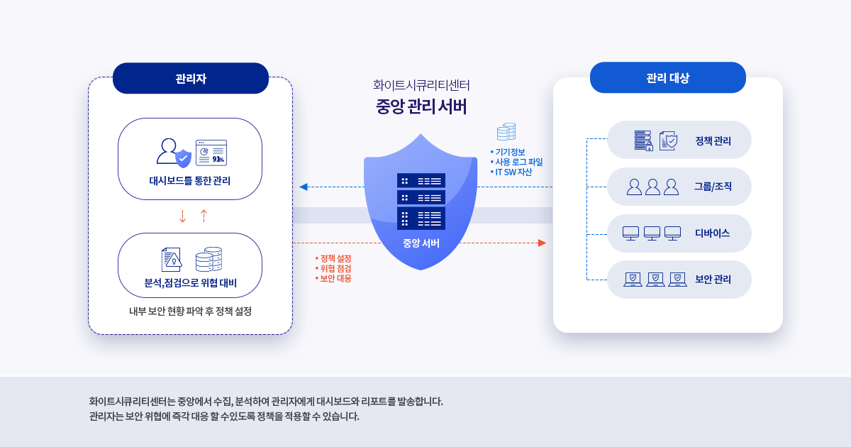 화이트시큐리티 센터 WSC- 기업 관리에 필요한 보안을 중앙에서 효과적으로 관리 할 수 있습니다.